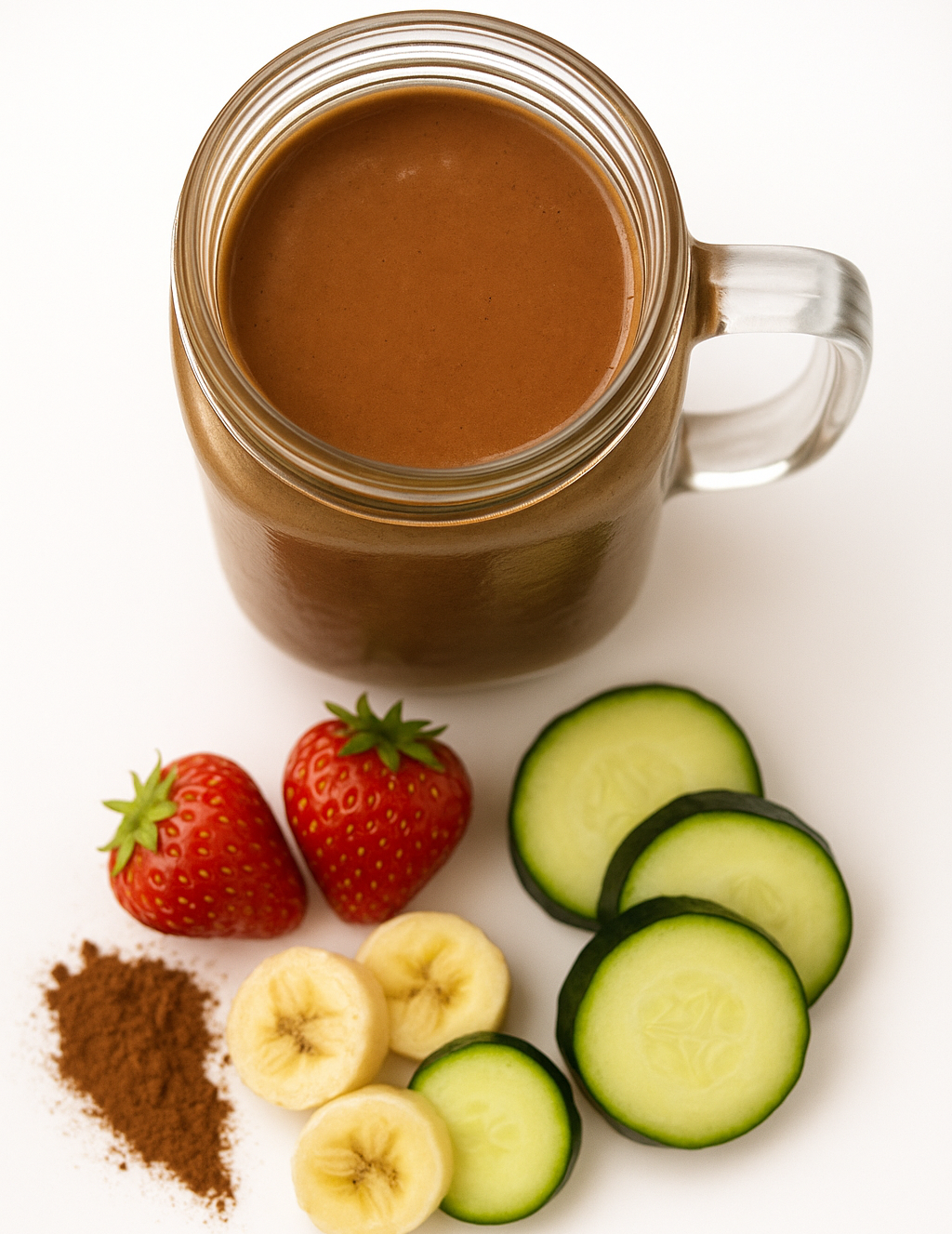 * Let op, deze smoothie bevat twee derde van je dagelijkse behoefte voedingsvezels. Bij gevoelige darmen, neem extra water gedurende de dag, of start met kleinere porties tot je darmen eraan gewend zijn.